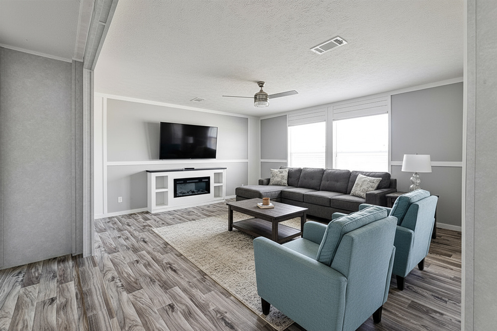 The Campbell model has 4 Beds and 2 Baths. This 2085 square foot Double Wide home is available for delivery in Texas.