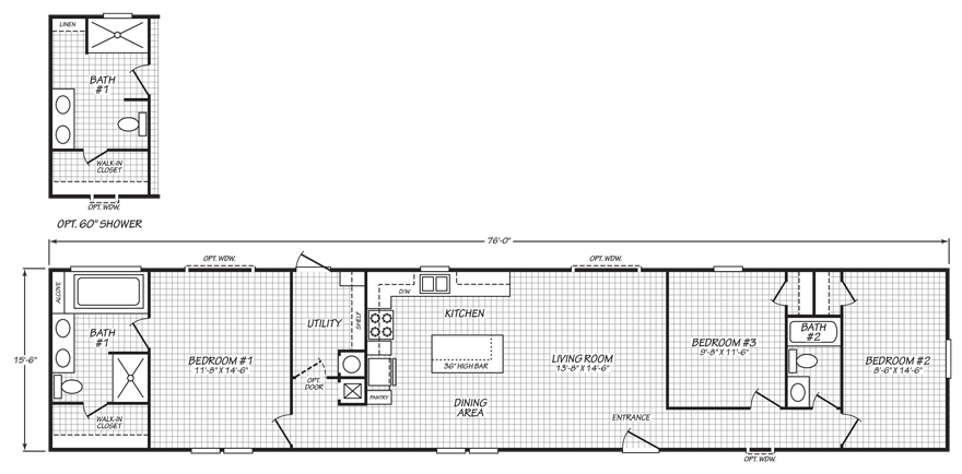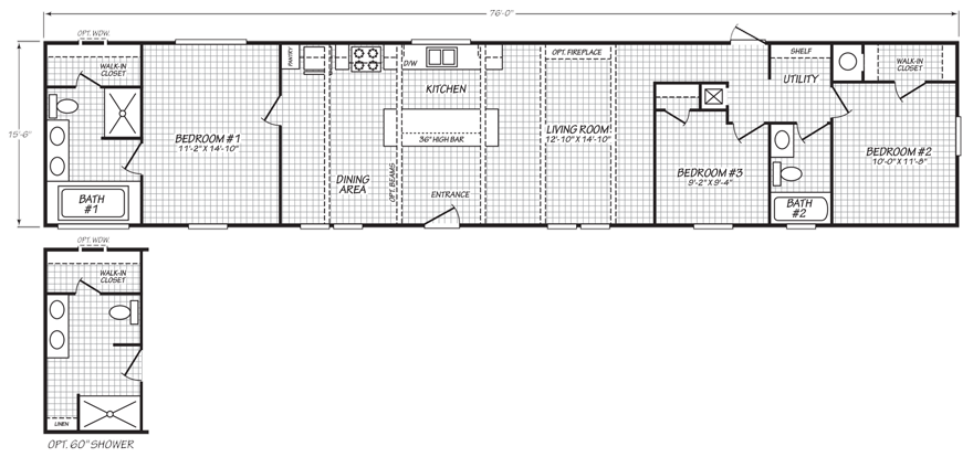 - 48” Fiberglass Shower in Master Bath (select